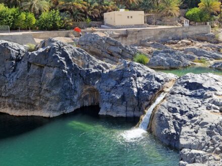 In Birkat Al-Mauz, einem am Fuße des Gebirgsstocks gelegenen Dorf, legen Sie den ersten Stopp des Teges ein. Sie unternehmen einen Spaziergang vorbei an Bananen- und Dattelplantagen sowie Wasserkanälen („Aflaj“ genannt) zum alten Ortskern. Die Aflaj sind übrigens in der UNESCO-Liste des Weltkulturerbes eingetragen.